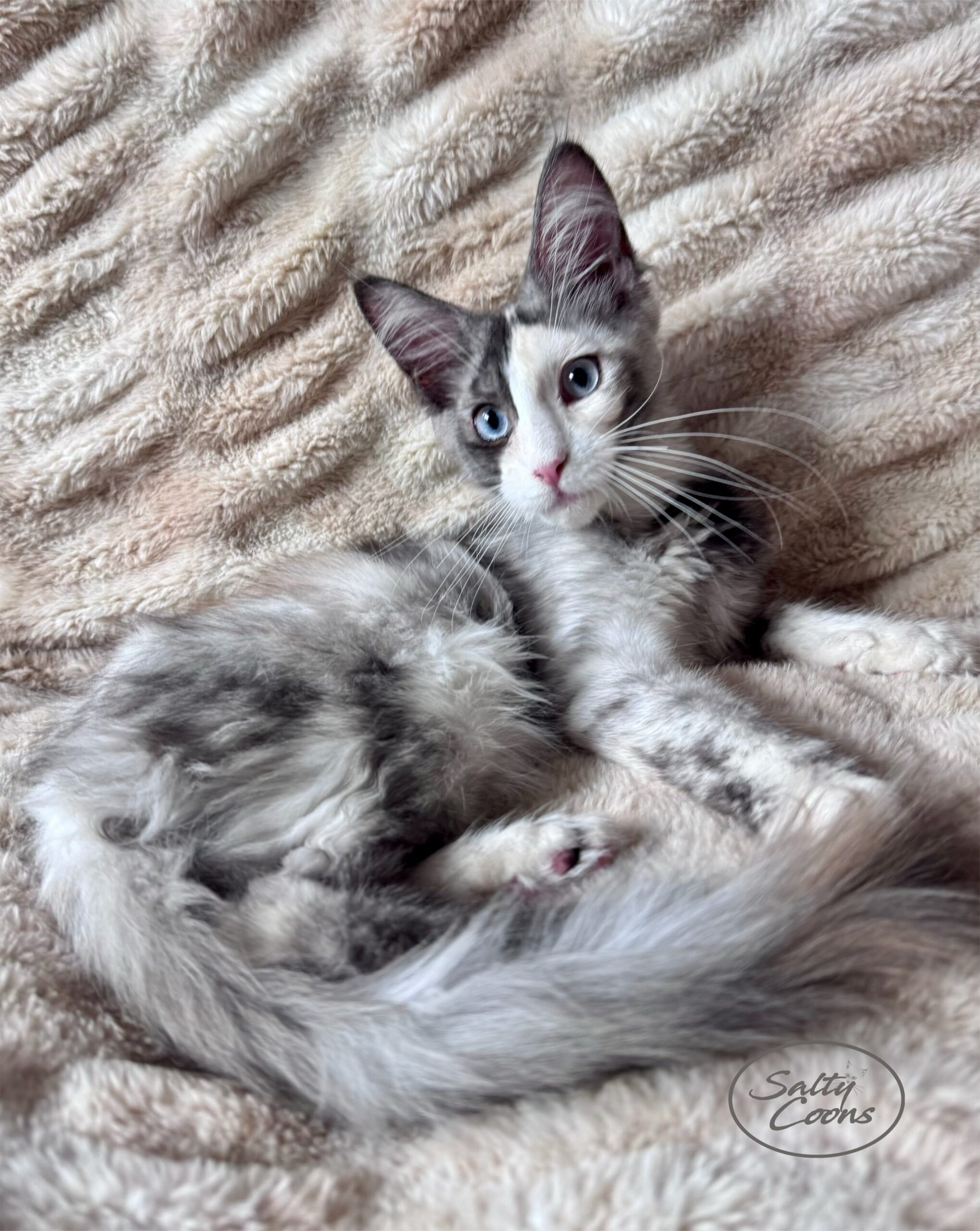 I Sea Blue, introducing our exquisite lineup of six unique Maine Coons, each possessing captivating blue eyes and some are polydactyls. These exceptional felines promise to yield a plethora of BLUE EYED Maine Coon kittens in a diverse array of hues. While some kittens boast polydactyl paws, others showcase standard ones, offering a delightful assortment of beauty akin to a lavish buffet!