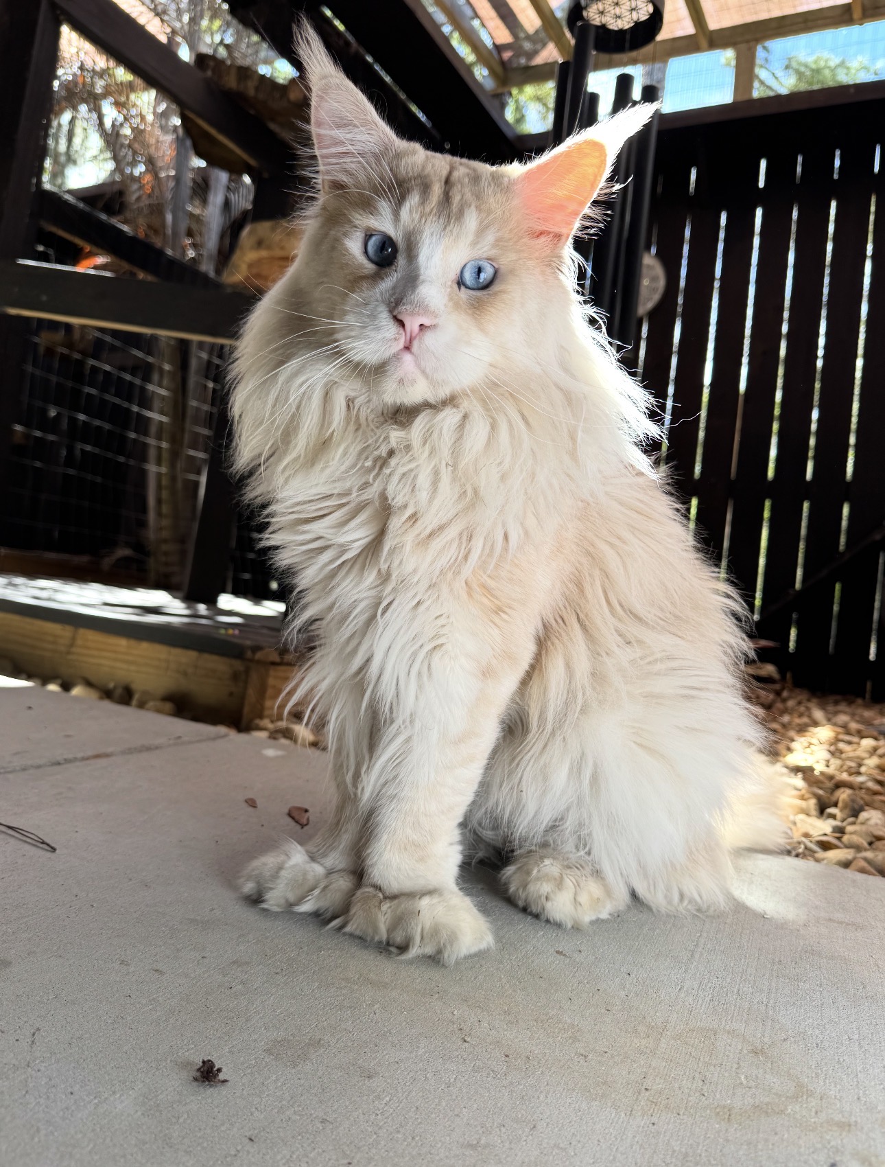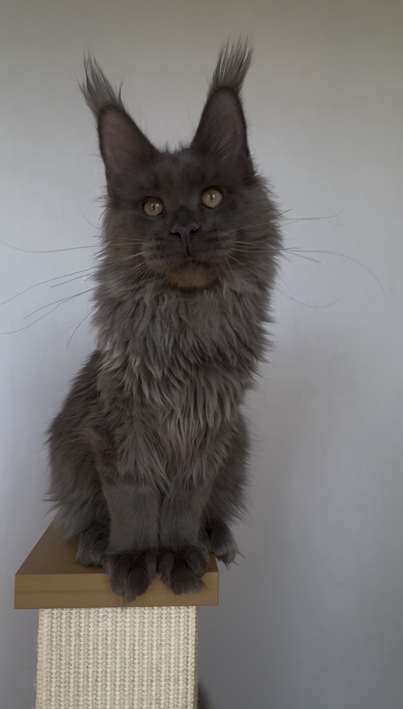 At 4.5 months old and an impressive 9 lbs, Cobalt's size matches his presence, making him a standout in our breeding program. Get ready for an exciting journey ahead with Cobalt leading the way towards a future filled with enchanting blue-eyed kittens!